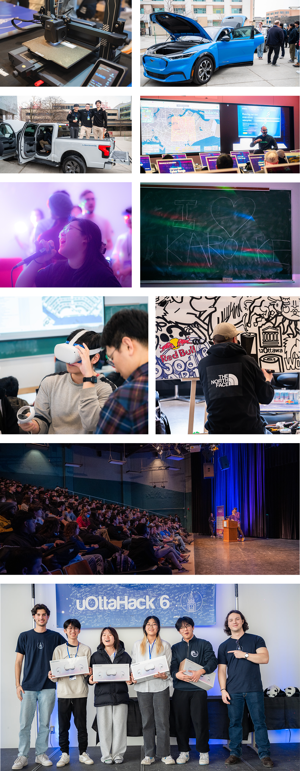 Sponsorship (Caitlin & Marouane): One of our toughest challenges was persuading anyone to collaborate with us — a group of university students attempting to organize a 'hackathon', let alone contribute money. Caitlin was a superstar in her role in uOttaHack 5, effectively connecting students to some of the top employers in Canada and securing funding to make the event possible! The following year, despite a difficult tech economy, Marouane built upon the great foundation of the previous year and delivered some of the best sponsors and passionate supporters our events have ever had. A highlight of uOttaHack 6 was Ford, one of our Gold level sponsors, bringing a ton of vehicles for students to explore and play around with!